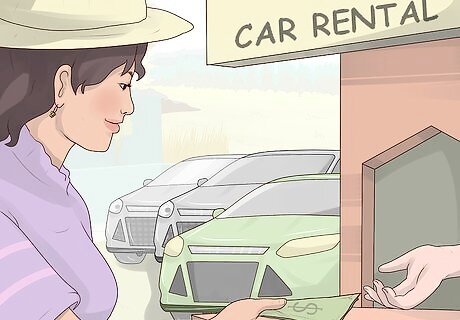 Rent a car if you are comfortable driving on the left side. If you want to drive yourself around the country of Ireland, consider renting a car to use while you are there. Most cars are manual in Ireland, so make sure you are comfortable driving a stick shift. Remember to drive on the left side of the road, and prepare for road signs to give distances in kilometers, not miles. Visit the airport or your nearest car rental location to pick out a car for your trip. You must be at least 21 years old to rent a car in Ireland. If you are between the ages of 21 - 24, you may be charged an extra fee.