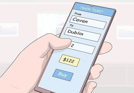 Buy a rail pass if you are visiting major cities. The trains in Ireland only stop in large cities, like Derry and Dublin. If you will be touring around the country from city to city, purchase a rail pass ahead of time to save on the cost of train tickets. A 1 month Ireland rail pass costs $122 as of December 2019. You can also buy a European rail pass if you are visiting other countries besides Ireland. To purchase your rail pass ahead of time, visit https://www.raileurope.com/pass/ireland-pass-5920