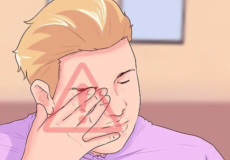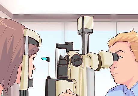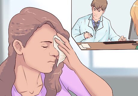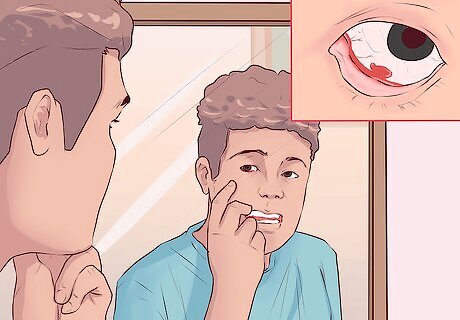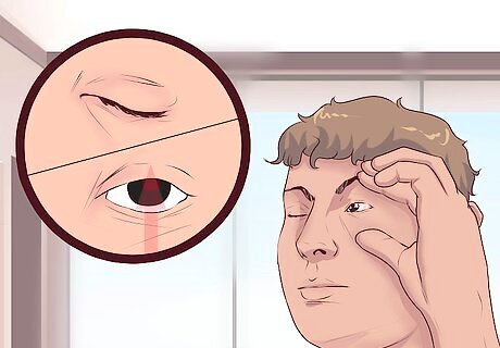 Look for blood. If the colored or white part of the eye has blood in it, the person should see an eye specialist immediately. This should happen even if the person isn’t in severe pain. Blood in the eye could lead to or be a sign of serious complications. The person should also seek immediate medical care if they have: Vision problems (such as double vision or blurry vision) Severe pain Bruising around both eyes Bleeding from the nose