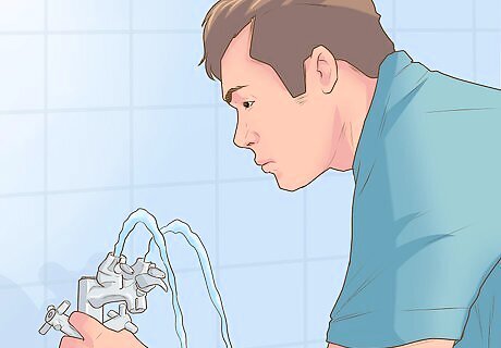 Flush the eye immediately with water. Use fresh, clean water to immediately dilute the chemicals and get them out of the eye as fast as possible. Ideally the person should be able to simply hold their eye under a faucet of running water for as long as necessary. There should be enough pressure to thoroughly flush the eye, but not so much as to cause painful pressure.