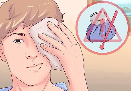 Apply a cold compress. Do this as soon after the injury as possible. Hold the compress against the eye with gentle pressure. The compress should be cold, which will help reduce swelling if applied very soon after the injury. The compress can be made of a cold pack or a cloth filled with ice. Put pressure near and around the eye, but not on the eyeball itself. Leave the compress on until it’s no longer cold. Repeat this several times a day for a few days.