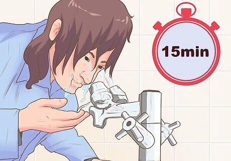 Continue running water on the eye for 15 minutes. This may seem excessive, but it’s important to make sure the eye is completely clean and free from chemicals. Depending on the type of chemical and how much the eye was exposed to, the eye may continue to burn or feel painful for a while.