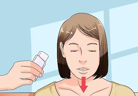 Prepare the person to receive medication from the inhaler. If the person has his head resting downward, temporarily lift his upper body back. If there is a spacer for the MDI, attach it to the inhaler after shaking. Remove the cap from the mouthpiece. Help the person tilt his head back if necessary. Have the asthmatic exhale as much as possible before using the inhaler. Allow the person to administer his own medication. Inhaler dosages must be appropriately timed, so allow the asthmatic control of this process. Help the person support the inhaler or spacer against his lips if necessary. Most asthmatics will pause for a minute or two between puffs.