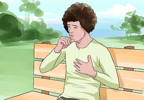 Rest while awaiting emergency personnel. Sit and rest while emergency personnel are coming to your aid. Some asthmatics find sitting in the "tripod" position—leaning forward with their hands on their knees—to be helpful because it can relieve pressure on the diaphragm. Try to stay calm. Becoming anxious can increase your symptoms. Ask someone in the vicinity to sit with you to help you stay calm until emergency help arrives.