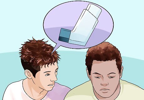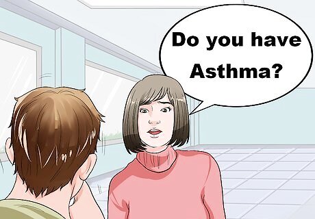 Calmly ask "Do you have asthma?" Even if the person cannot verbally answer due to wheezing or coughing, he may nod or gesture towards his inhaler or an instruction card. Ask the person if he has a written asthma emergency action plan. Many individuals who are prepared for asthma attacks will carry a written emergency plan with them. If the person has one, take it out and help him follow the plan.