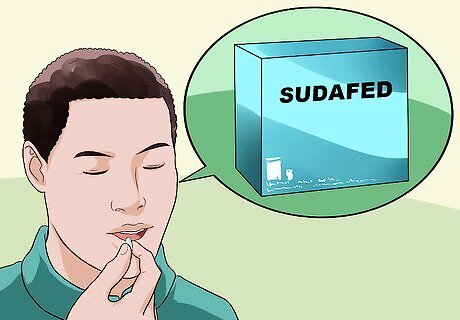 Make use of common household drugs. Certain drugs may help relieve the effects of an asthma attack in the case of emergency, although they should never be taken in lieu of getting emergency assistance. Administer a fast-acting antihistamine (allergy medicine) if you or the asthmatic thinks an allergen has triggered the reaction. This may be the case if you are outside on a day with a high pollen index. Antihistamines include: Allegra, Benadryl, Dimetane, Claritin, Alavert, Tavist, Chlor-Trimeton, and Zyrtec, to name a few. Echinacea, ginger, chamomile, and saffron are all natural antihistamines. If you can find any teas that contain these ingredients, this might help relieve some symptoms, although the effect of antihistamines in general is likely to be minimal. Be careful when using natural herbs or supplements as some people are allergic to the ingredients. Use an over-the-counter pseudoephedrine like .Sudafed. Sudafed is a nasal decongestant, but it could help during an asthma attack when an inhaler is not present because it can help open the bronchioles. It's best to break the pill down with a mortar and pestle and dissolve in warm water or tea before administering to limit the risk of choking. Note as well that while it does work, it can take up to 15 to 30 minutes to be effective. Keep in mind as well that pseudoephedrine can increase the heart rate and blood pressure.