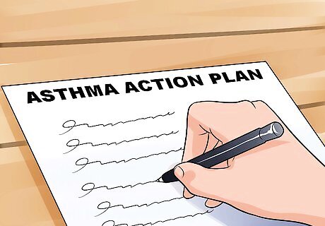 Have an action plan in place. Once you are diagnosed with asthma, create an asthma action plan with your allergist or physician. This plan is basically a step-by-step process of what to do when you face an acute attack. The plan should be written down and include emergency phone numbers as well as those of family and friends who can meet you at the hospital if needed. When you get the diagnosis, consult with your doctor to identify your particular symptoms of worsening asthma and what you should do when they flare up (e.g. take medication, go to the emergency room, etc). Make sure you know how to use your rescue inhalers. Write this plan down and keep it with you at all times.