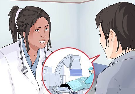 Inquire about radiation. If you have later stage cancer or if surgery is not your preference and you have stage I cancer, talk to your doctor about radiation therapy. Radiation therapy requires multiple visits, but the advantage is that it is not invasive like surgery (i.e. it does not require cutting into you to remove the cancer). There are two types of radiation that are commonly used to treat cervical cancer. The first is called external beam radiation therapy (EBRT), in which the radioactive beams are emitted from a source outside your body and directed toward your cervix and the surrounding area. The second type of radiation therapy is called brachytherapy — rods containing radiation are inserted through the vagina up against the cervix. They are then left there for one to two days and emit local radiation which works to treat the cervical cancer. This is done in the hospital. Again, the extent of radiation as well as the effectiveness of this mode of treatment depends upon the stage and severity of your cervical cancer. Radiation treatment can have significant side effects. EBRT may cause fatigue, upset stomach, diarrhea, skin damage, bladder discomfort, vaginal pain, anemia, and menstrual changes (including early menopause). Brachytherapy may cause irritation of the vagina and vulva. Fatigue, diarrhea, nausea, irritation of the bladder, and low blood counts may also occur. Long-term effects of radiation treatment may include vaginal scarring, which may make vaginal sex painful. You may also experience vaginal dryness, swelling of the legs, and it may weaken your bones. Radiation is most commonly combined with chemotherapy. This is because, for cervical cancer, the combination of radiation and chemotherapy is synergistic and provides significant additional benefit (rather than simply opting for one or the other).