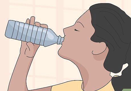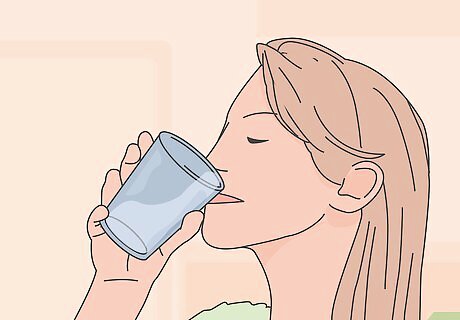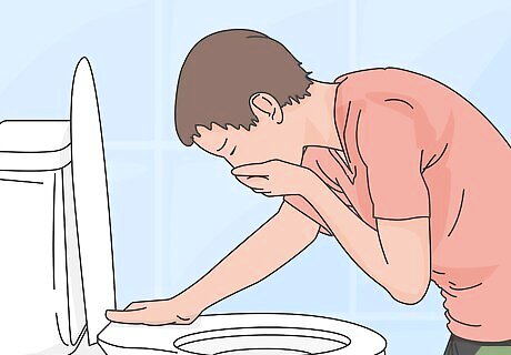 Keep well hydrated. A further complication of chronic or severe bouts of vomiting is dehydration, especially if you can't keep fluids down. Symptoms of dehydration to look out for include: severe thirst, dry skin, sunken looking eyes, lack of urination, headache, confusion and lethargy (fatigue). Focus on drinking purified water and herbal teas for hydration, although chicken / beef broths and diluted fruit juices are also good sources of electrolytes (mineral salts that are lost with vomiting). Avoid beverages with caffeine (coffee, black tea, colas, energy drinks) because it's a diuretic that stimulates urination and increases the risk of dehydration. If you can't keep yourself hydrated with beverages, you'll need to go to a hospital or emergency clinic to get intravenous fluid through a vein in your arm.
