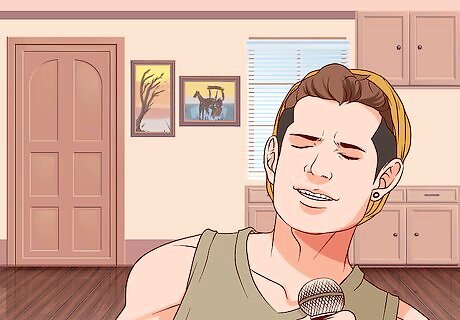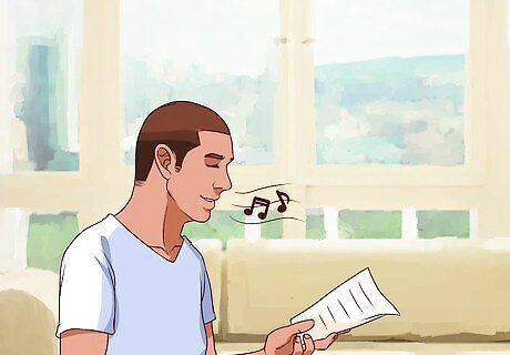 Practice speaking along to music. Choose some of your favorite songs. You may also want to choose soothing, relaxing songs. Use these songs to practice your speech skills by singing your words. Because singing is easier for many people with speech impediments, you can try singing your words instead of speaking them. You may also write down words and read them as you sing them to the melody of the music. Practice repeating phrases or sounds along with the music to improve your speech ability.