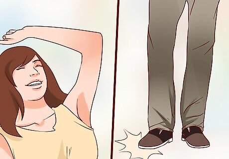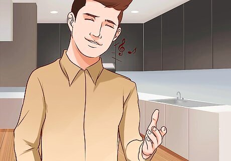 Move to the music. Many people combine dancing with music in music therapy. Dancing helps your body find a rhythm which your mind then responds to as it sings the words. Instead of tapping a rhythm on a drum, you can get up and move around. This may include tapping your foot to the music, swaying your body, or going through rhythmic dance moves.