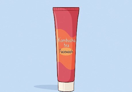 Use a kombucha tea facewash. You can purchase kombucha tea from the grocery store – the kind you would usually drink – or try brewing your own at home. Either way, try using kombucha tea as a facewash twice a day instead of a store-bought cleanser. Simply splash it onto your face, over the sink, like you would when washing with water. This may be an inexpensive alternative to pricey fermented skin care products. You can also try using the SCOBY as a facemask (the kombucha “mother,” or Symbiotic Culture of Bacteria and Yeast – that slimy-looking glob in the tea). Apply it evenly to your skin, let it sit for 10-15 minutes, and rinse it off with cool or lukewarm water. It’ll feel sticky and slimy while on, but not afterwards. Keep a towel handy – this can be messy!