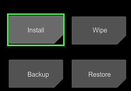 Install your downloaded ROM. Once your Android has been wiped, do one of the following depending on your custom recovery: TWRP - Tap Install, select the ZIP folder that you put on your Android, and swipe right the bar that appears. ClockworkMod - Select install zip, select your ZIP folder, and follow any on-screen instructions until the ROM begins installing.