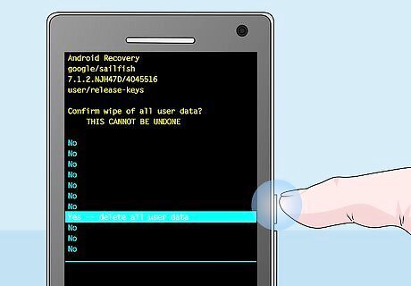 Select Yes -- delete all user data. You'll find this option near the middle of the screen. If prompted to confirm, select the affirmative answer and press the Power button again.