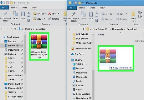 Move the ROM onto your Android. In the Android window, double-click the Internal folder, then click and drag the ROM's ZIP folder into the Downloads folder. You can also copy the ZIP folder by clicking it and pressing Ctrl+C (or ⌘ Command+C on a Mac), then paste it into the Downloads folder by opening the folder and pressing Ctrl+V (or ⌘ Command+V on a Mac). If your Android's window doesn't open, open This PC and double-click your Android's name first. If you're using a Mac, you'll need to install Android File Transfer and open it before you can move files onto your Android.