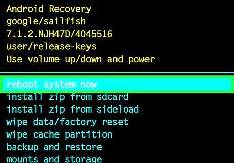 Select reboot system now. It's at the top of the Recovery Mode menu. This will prompt your Android to restart like usual.
