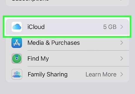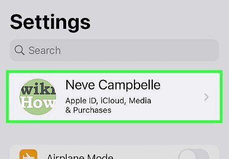 Your name is at the top of the Settings screen. This displays information about your Apple ID account.