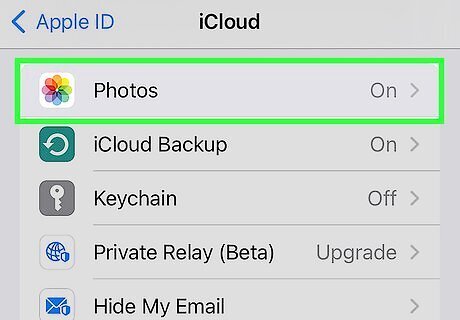It's near the top of the menu. If your photos are already syncing to iCloud, the switch will be green. If not, it will be gray.