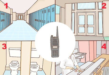 Assign each radio a number and mark each radio accordingly. Make a list of all the currently numbered locations in the facility. This list should include each numbered classroom, gymnasiums, cafeterias, outdoor locations where training takes place, etc,. If there is no currently assigned number for a location, excluding restrooms, hallways, closets, and various storage facilities, assign numbers and place them prominently at the physical location, and then mark the appropriate radio with that number.