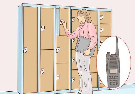 Disburse two-way radios to adult staff during a scheduled training meeting. Conduct a brief meeting with staff. Distribute radios based on the location to which each staff member is assigned. Demonstrate the proper use of the radio to attendees. Explain the rules of two-way radio operation as follows: The two-way radio is to be used strictly for the purposes of securing the facility and its occupants, never to be used in place of a telephone for private "chatter" between users. Each individual must go to the locked-room and check out a radio upon arrival for work in the morning/afternoon/evening and return radio immediately prior to leaving the facility. Upon picking up radio, user is to turn it on and go directly to their workspace. Upon entering their workspace, the user must put down any items being carried except the radio, and conduct a thorough visual inspection of their workspace. After ensuring that workspace is safe for occupancy, the user should press the microphone button (when they don't hear anyone speaking through it) and call out the number assigned to that two-way radio and the word "Clear." User may then place radio where it is visible and can be accessed easily at all times and prepare themselves for the workday. Upon initiation of class, the user (if a teacher with an assigned class) must take the roll of students present and record properly on their paperwork, then press the microphone button (when no one can be heard speaking from it) and clearly state the two-way radio number and the word "Present" or (if necessary) "Prepare for list". When they hear "Confirm" from the radio, the user must clearly say, then spell the name of any student unaccounted for so the absence can be noted by the "Hub". User is to follow this procedure at the beginning of each scheduled class throughout the day. When the user is ready to leave their assigned area at the end of the workday, the user is to visually inspect their workspace area, exit and lock any appropriate doors, then press the microphone button and state the number assigned to the radio, then the word "Clear". The user is to then go directly to the locked-room and turn the radio off, place the radio on the appropriate charger, see that the charging light displays, then exit the building.