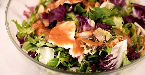 This dressing has a bold, tangy flavor that adds pizazz to a salad. Heat ⁄2 c (120 ml) of açaí juice with 2 teaspoons of Dijon (10 g) and 1 tablespoon (20 g) of raspberry jam over medium heat until the jam melts. In another bowl, whisk in 1 tablespoon ( 7 g) of cornstarch with 1 US tbsp (15 ml) of apple cider vinegar and whisk it into the açaí mixture once it simmers. Keep cooking and whisking the dressing so it thickens. Then, whisk in ⁄2 c (120 ml) of water and cool the dressing before you use it. Taste the dressing and add as much salt and pepper as you like. If the açaí dressing is still too thick for your liking, thin it with extra water.