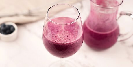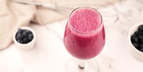 Açaí is fantastic with berries! Pour 1 ⁄2 c (350 ml) of açaí juice into a blender and add 1 cup of berries like blueberries, strawberries, or raspberries. You can use frozen berries or add a handful of ice cubes to make a thicker smoothie. Just blend the mixture and enjoy, or add any of these ingredients for extra flavor before blending: 1 1/2 tablespoons (10 g) of cocoa powder 2 tablespoons (24 g) of natural sweetener, sugar, or honey 1 tablespoon (8 g) of cinnamon 1 tablespoon (6 g) of turmeric ⁄2 cup (120 ml) of apple cider ⁄4 cup (59 ml) of pasteurized liquid egg white, optional