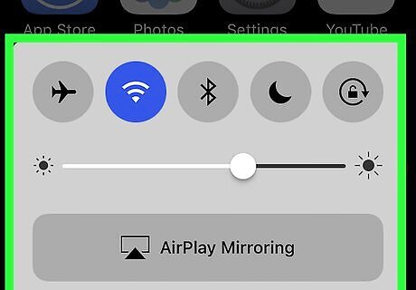 Swipe up from the bottom of your device's screen. This will bring up your iPhone or iPad's Control Center.