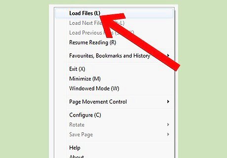 Load a comic file the conventional way. The first way to load comic book files into CDisplay is by using the load dialog. Select “File” from the file menu and click on “Load Files.” You can also right-click anywhere on the application’s user interface and click on “Load Files” from the menu. The keyboard shortcut for this is the “L” key.Use CDisplay Step 5Bullet1.jpg The Windows load dialog box will appear. Navigate through your computer to locate the folder or directory where the comic book files you’d like to read are stored. Click on one to load it into CDisplay.Use CDisplay Step 5Bullet2.jpg