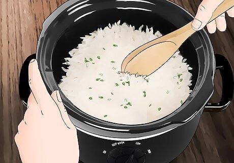 Spice up your rice with cilantro. Once the rice has finished cooking, mix 1 to 2 tablespoons (14.3 to 28.6 g) of chopped cilantro into the rice until well combined. For added freshness, squeeze some lime on the rice as well. Alternatively, sprinkle the chopped cilantro on top of your favorite rice dishes, like chicken and rice.