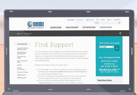 Join a support group. Spending time with other people who have bipolar disorder can help you in a number of different ways. The people in the support group may be able to offer you encouragement and a sense of connectedness. Joining a support group can also help because the other members may be able to suggest ways that you can use distraction as a coping skill. The National Alliance of Mental Illness (NAMI) provides information about support groups at https://www.nami.org/Find-Support. The Depression and Bipolar Support Alliance(DBSA) also provides a support group directory on their webpage http://www.dbsalliance.org/site/PageServer?pagename=peer_support_group_locator. Ask your mental health provider about support groups in your area. You could say, “I'd like to join a support group. Could you recommend some in the area?” You can also join an online support group or online forum if you can't attend an in-person support group.