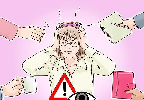Know your triggers. Triggers are people, places, events, or situations that can increase the chances you will become stressed or have a bipolar episode. For example, starting a new job or visiting your childhood home may cause you a lot of stress. If you know what your triggers are, you'll be able to anticipate when you might need to use a self-calming technique like distraction. Make note of what things seem to upset you if you don't already know what your triggers are. For example, you might write it in your journal if you noticed that you got agitated while at a Black Friday sale. Look back through your journal and make a list of your typical triggers. For instance, you might have written down: loud crowds, moving, and taking written tests.