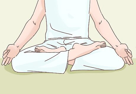 Practice meditation. This can be another positive and productive way to distract yourself. Meditation can help relieve physical tension, clear your mind, and calm and relax you. It's also something that you can do no matter where you are, for as long or as short a time as you need. Make yourself as comfortable as possible. If you can, go somewhere quiet where you can sit or lie without being disturbed. Focus on your breathing. Think about it as you slowly inhale through your nose, hold it in your belly, and then release it through your mouth. Try not to think about anything but your breathing. If your mind wanders, gently bring your thoughts back to your breathing.