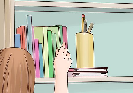 Get organized. You can be productive while distracting yourself if you use the time to organize your schedule and your physical space. Getting organized can not only be a way to focus your attention on something less stressful, it can also be a good way to manage your bipolar in general. Make sure that you have your treatment information organized and easily accessible. For example, you might create a notebook containing emergency treatment information. Organize your workspace so that you only have materials that you need there. Use trays, cups, baskets, etc. to help you find a home for everything.