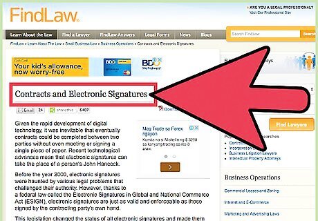 Sign up for a free trial. Many e-signature providers allow you to use a free trial. You should sign up for a free trial so that you can compare the experience of using each service. To sing up, visit the website and click on “Start Free Trial” or a similar link. You will be prompted to create a username and password. You also will enter your personal information (name, title, company, and phone number).