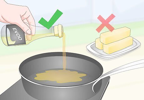 Choose EVOO over butter and explore other oil alternatives. Avoid canola oil and oils that say “partially hydrogenated,” which can contain a lot of trans fats. Extra virgin oil, avocado, grapeseed, coconut, walnut, and sesame oils all have different flavors and benefits. Visit your local health food store and explore the oil section to choose a heart-healthy cooking oil. EVOO has antioxidants that regular olive oil doesn’t, and the higher quality of the oil means that it’s going to taste better, too! Don’t be afraid to splurge a little on a bottle of good EVOO.