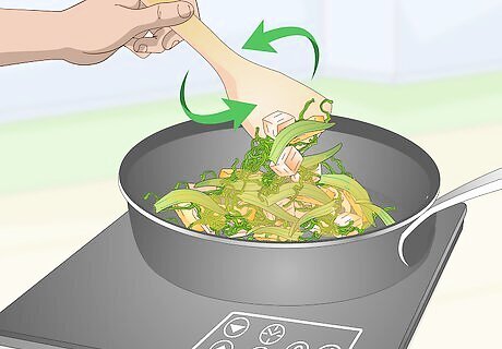 Broil your meals in the oven for a fast way to cook. Broiling is a high-heat option that doesn’t require you to add any additional oils or fats to your dish. Use lean cuts of meat, like chicken and fish, and heartier vegetables like squash and onion. Make sure you preheat the broiler before putting your dish in the oven or broiler drawer. Meals take about 12-15 minutes to broil. Always check your meat with a meat thermometer before serving it. The risk with broiling foods is that because of the high heat level, the food can dry out quickly. That’s why it’s a good idea to use thinner, leaner cuts of meat so that they won’t take as long to cook.