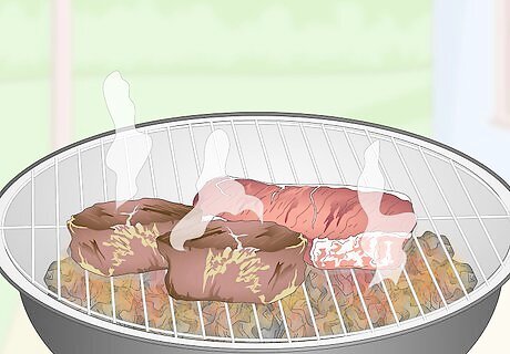Grill your meats and veggies for a nice smoky flavor and less fat. Grilling is great because it makes your meat tender while also letting the fat drip away from it, which is healthier for you! It also imparts a nice flavor to meats and veggies. You can grill steak and chicken, as well as vegetables, like asparagus, peppers, onions, zucchini, and even lettuce! There are some studies that suggest the char from grilled foods is carcinogenic and shouldn’t be eaten regularly. To combat this, try to grill leaner cuts of meat that have shorter cooking times or use a gas or electric grill if you can. You can even grill fruits, like peaches, for a tasty addition to main meals and desserts.