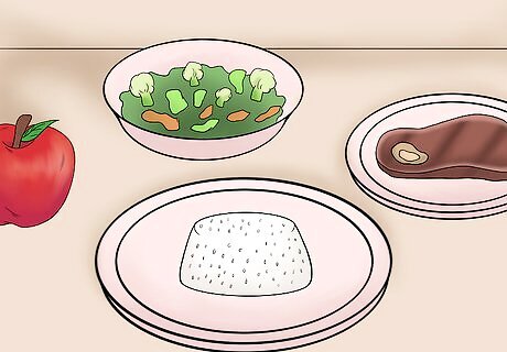 Eat a balanced diet. Regardless of whether or not you are using hemp protein powder to replace meals or to use as a supplement, high protein snack, it's still important to eat a balanced diet when you're trying to lose weight. A balanced diet is important in weight loss because you'll need to eat a wide variety of foods from within each food group to ensure you're meeting your daily nutrient needs. If you're using hemp protein powder to make meal replacement shakes, add fruit or vegetables (like spinach, kale or avocado) to help meet your five to nine recommended servings of fruits and vegetables each day. In addition, make sure that you're getting enough protein in your diet. If you are using hemp protein powder as a meal replacement, that counts as one to two servings of protein for that meal. Also, include a serving or 3 to 4 oz of lean protein at other meals as well. Also include a source of 100% whole grains in your diet. These high fiber foods should be measured to a 1/2 cup or 1 oz serving.
