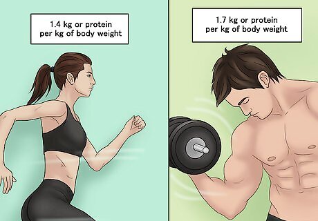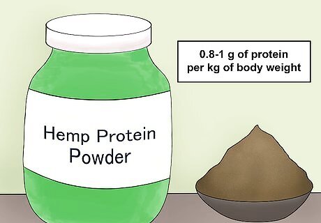 Aim for adequate protein to support athletic performance. In addition to appropriately timed snacks, you may need to add hemp protein powder to your diet to help meet additional protein needs as an athlete. Although you do not need very large quantities of protein daily, you do need to ensure you're eating enough to support whatever activity you do. If you're a "power athlete" (participating in sports that require speeds or strength) you may need up to 1.7 g of protein per kg of body weight. If you're an endurance athlete (a long distance runner for example), you may need up to 1.4 g of protein per kg of body weight. Use your hemp protein powder as snacks or in addition to meals to help ensure you're consuming enough protein every day.