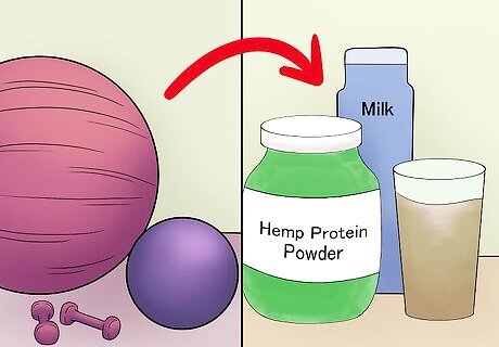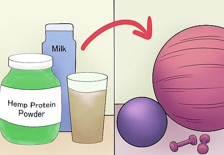 Use hemp as pre-workout snack. A pre-workout snack can play an important role in your performance during your exercise routine. Before a workout, you can use a pre-workout snack to give your body an extra boost of energy to fuel yourself through your workout. The best type of snack is a carbohydrate rich food. Although hemp protein powder is a great source of natural protein, many hemp protein powders are also fairly high in carbohydrates. Mix your hemp protein powder with milk - another source of carbohydrates - to give your body a good energy boost for your workout.