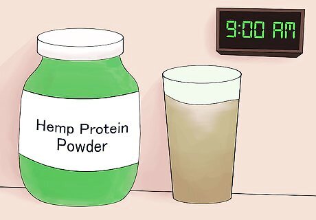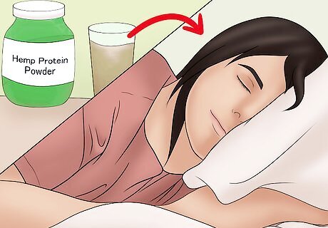 Drink a protein shake before bedtime. Another great time to load up on extra protein from your hemp protein powder is right as you go to bed. Studies have shown that your growth hormones are elevated when you're asleep. When you drink a high protein shake before bed this can help stimulate growth and repair of your muscles. If drinking a large protein shake right before bed is uncomfortable, drink it about an hour before hitting the sack. This can help you digest your protein a little more thoroughly before falling asleep.