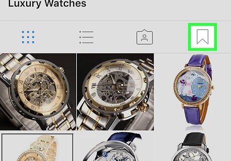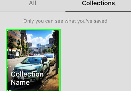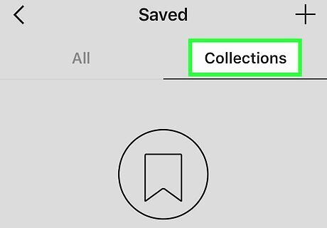 Go to your homepage and tap on the bookmark icon on the right. Login to Instagram and go to your homepage. From there, you'll see a rectangular icon with a triangle on the bottom that resembles a flag. This is the bookmark icon and will allow you to enter your collections.