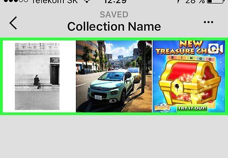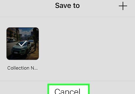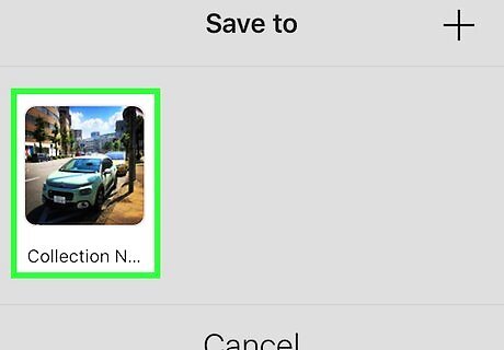 Select a collection. You can add your photo to an existing collection that you've saved. Scroll up and down to go through all your various collections. If no collection fits for this particular photo, you can create a brand new collection by pressing the plus sign on the right of the screen.