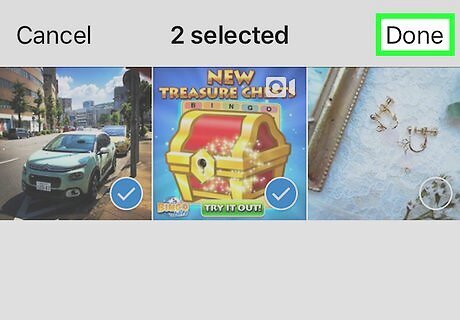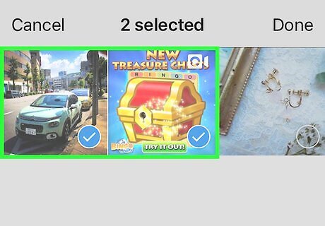 Select the photos you want in your collection. After you've hit "Next," you'll be brought to a page that includes all of your saved Instagram photos. Go through your saved photos and tap on the photos that you want to add to your collection. You'll know when you've selected a photo when the circle in the bottom right of your photo thumbnails displays a check mark.