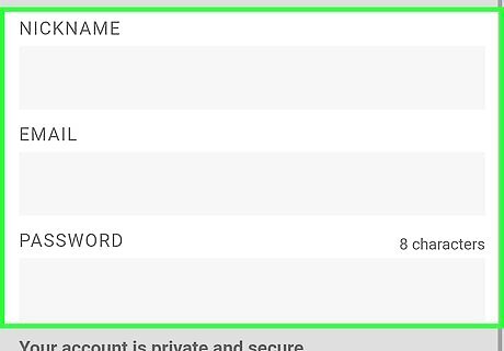 Fill out the form. In order to sign up for an account, you need to provide a nickname, your email and create a password.