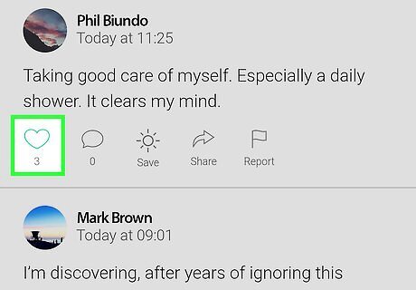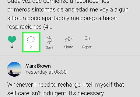 Tap the speech bubble icon to view the replies for a post. It's under the post next to the heart icon. The number just below the icon display how many comments a post has. Once viewing the comments, you can post a comment of your own. To post a comment: Tap "Type your message here..." at the bottom. Type a message. Tap Post.