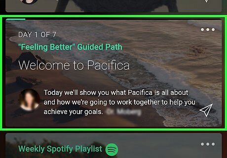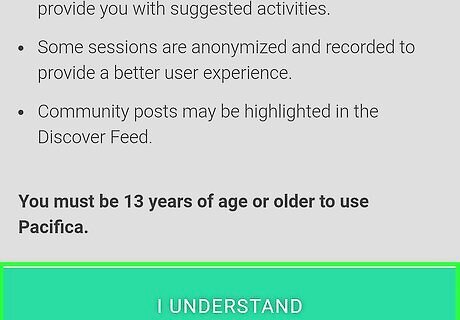 Tap Get Started. It's the green button at the bottom of the Pacifica title screen. This walks you through the setup process. If you already have a Pacifica account tap Sign In at the bottom of the title screen. Sign in with the email address and password associated with your Pacifica account, or sign in with your Facebook or Google account.