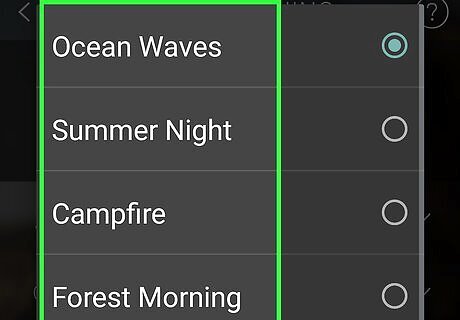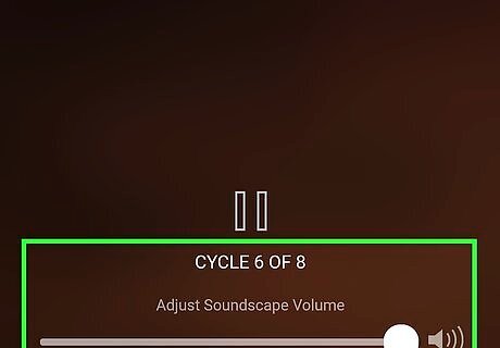 Select a soundscape. A soundscape is a relaxing sound that plays during the meditation exercise. Nearly all meditation exercises in Pacifica allow you to select your own soundscape. To do so, tap Soundscape at the meditation exercise menu. Tap the radial button across from a soundscape to select it. Soundscapes include Ocean Waves, Summer Night, Stream, Rooftop Rain, Thunderstorm, Bach Cello Suite #1, and no Soundscape.