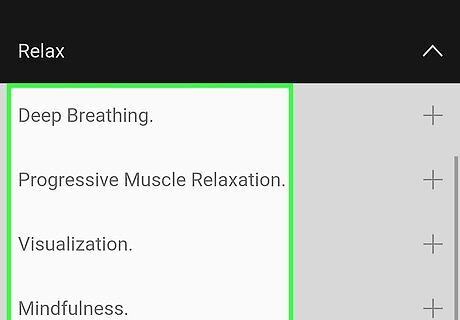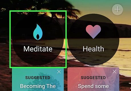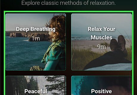 Tap a meditation exercise. There are a variety of meditation exercises with a different goal. Each meditation has it's own thumbnail image with the name of the meditation and the duration. They include exercises like, Falling Asleep, Deep Breathing, Positive Visualization, Social Situations, and more. Meditation thumbnail images with a lock in the lower-right corner require a subscription to access.