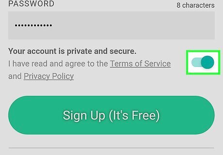 Tap the switch Android 7 Switch Off icon. The switch is located below the password bar. Tapping this switch indicates that you agree to the terms of service and privacy policy. This is necessary to sign up for Pacifica.